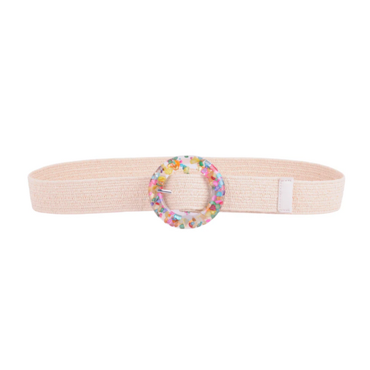 Glossy Acrylic Buckle Raffia Stretch Belt