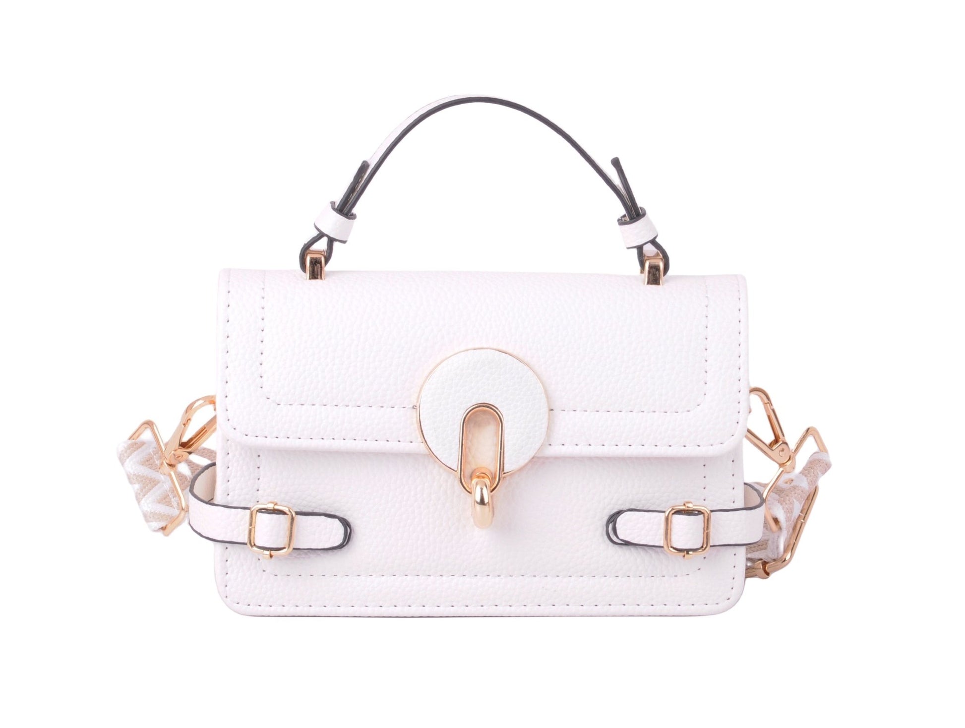 Elevate your style with our Modern Elegance Top Handle, adorned with rounded accent hardware and featuring a matching web strap alongside a chic PU crossbody strap. This sophisticated accessory seamlessly blends contemporary design with practical versatility. The rounded hardware adds a touch of refinement, while the web and PU straps offer options for various stylish looks. Make a bold statement and showcase your individuality with this fashionable top handle, designed for those who appreciate the perfect fusion of modern aesthetics and functional elegance.