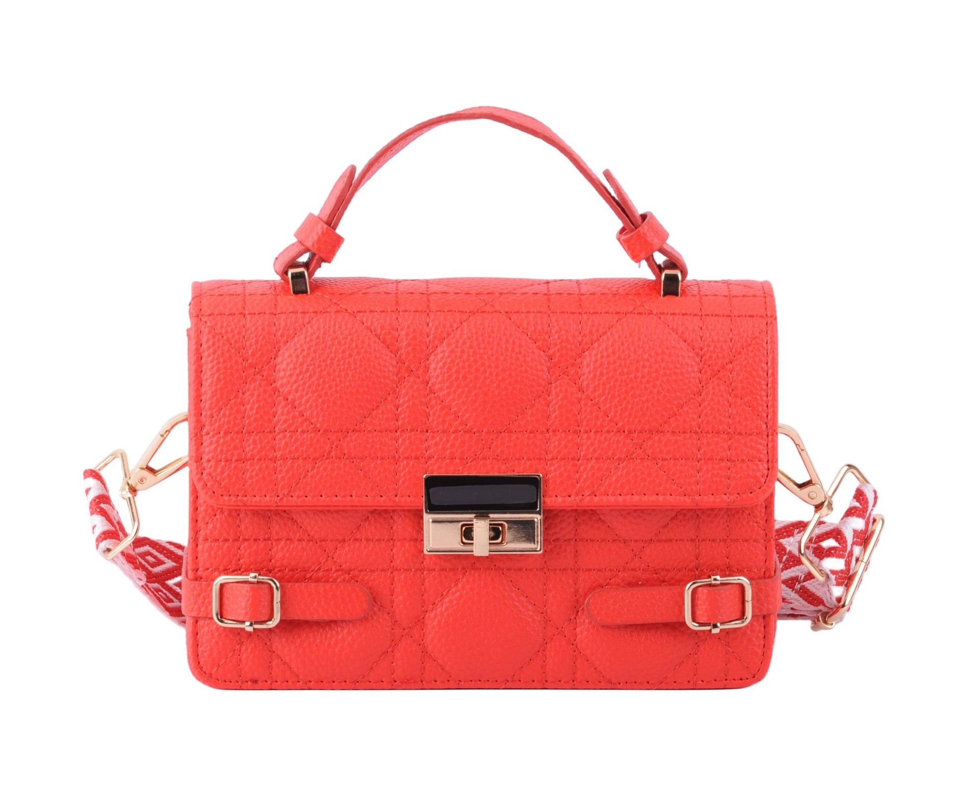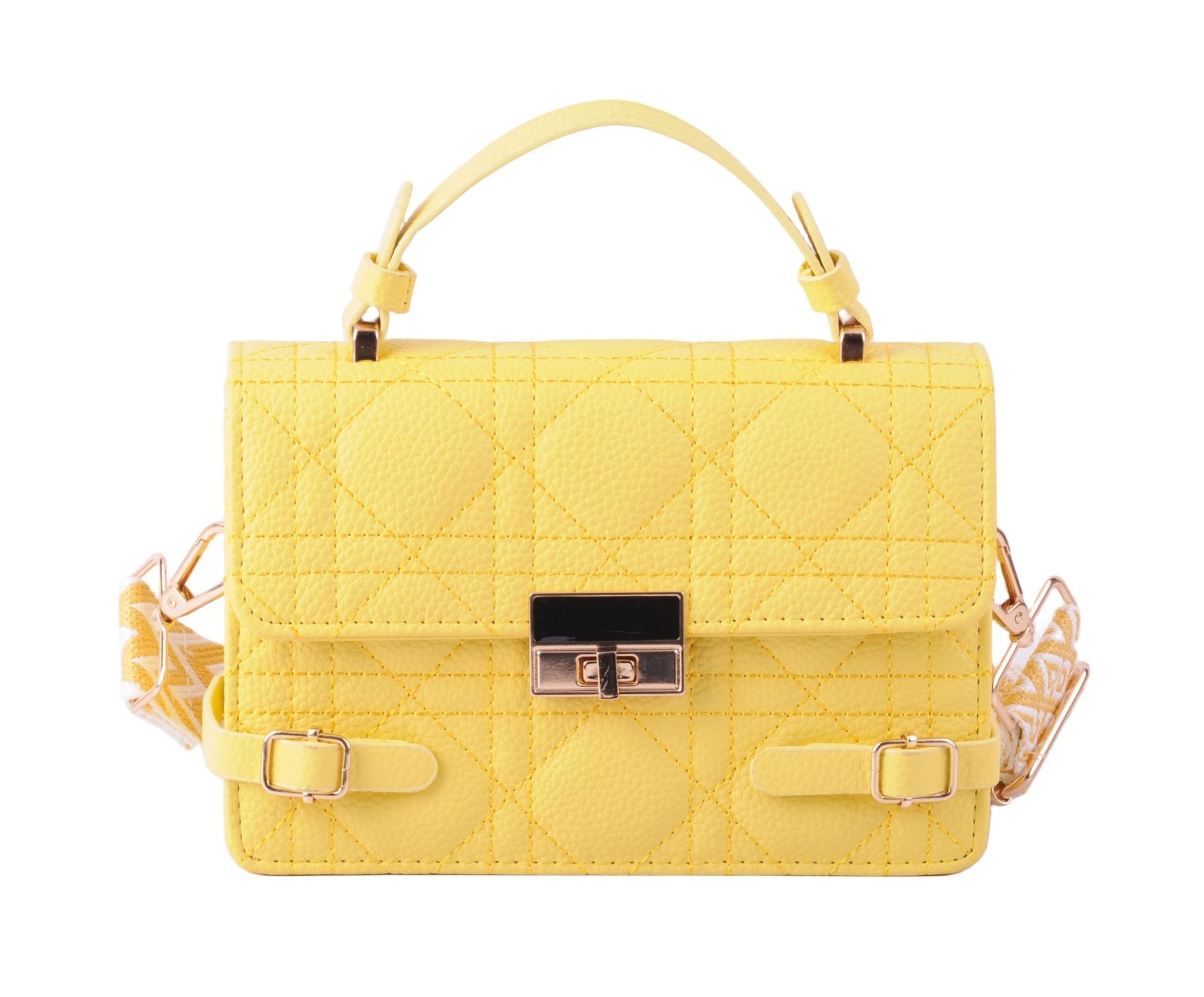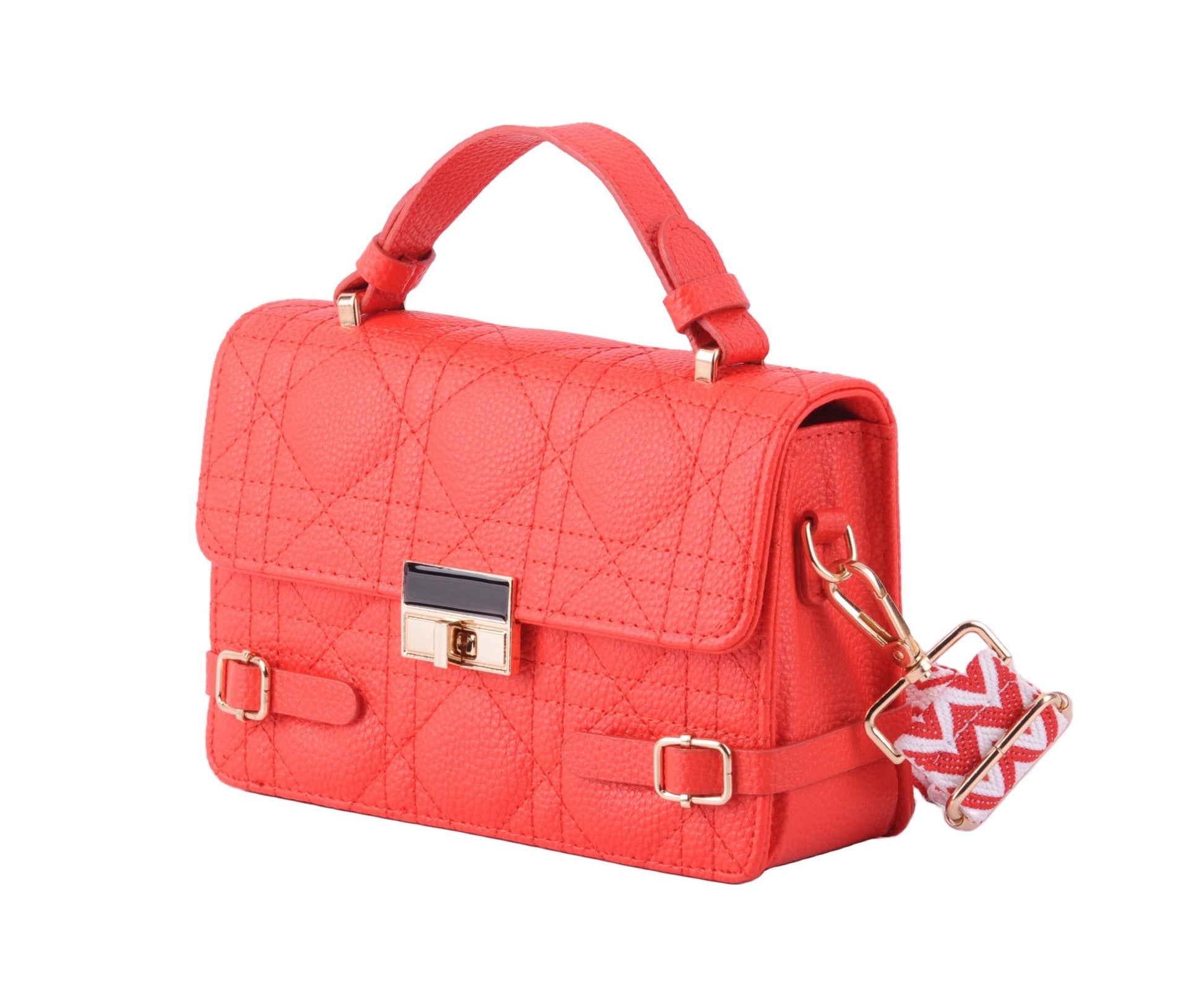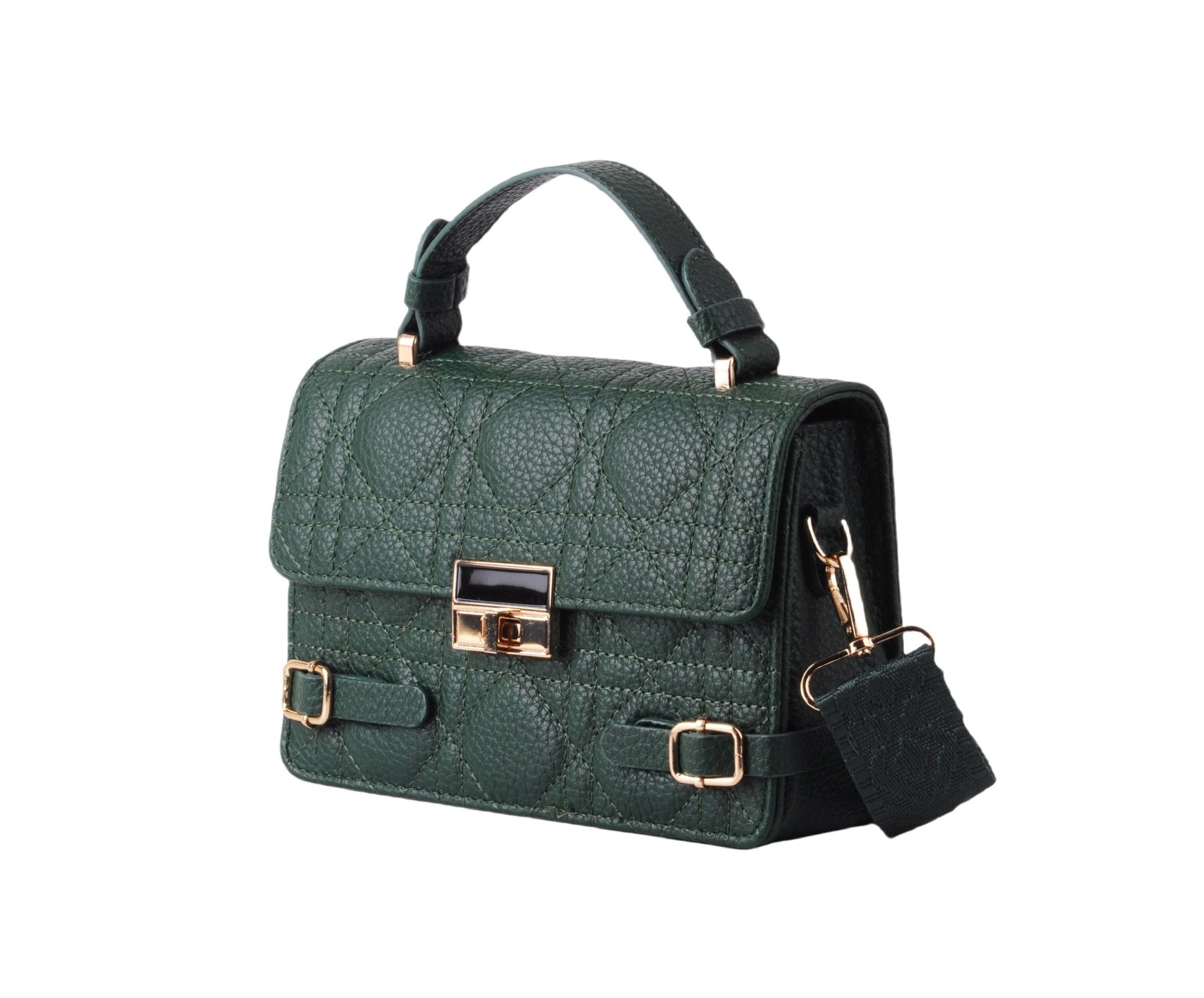 Make a statement with our Quilted Satchel featuring a metallic gold closure and luxurious vegan leather construction. This elegant accessory adds a touch of sophistication to any ensemble, making it a must-have for the fashion-forward.