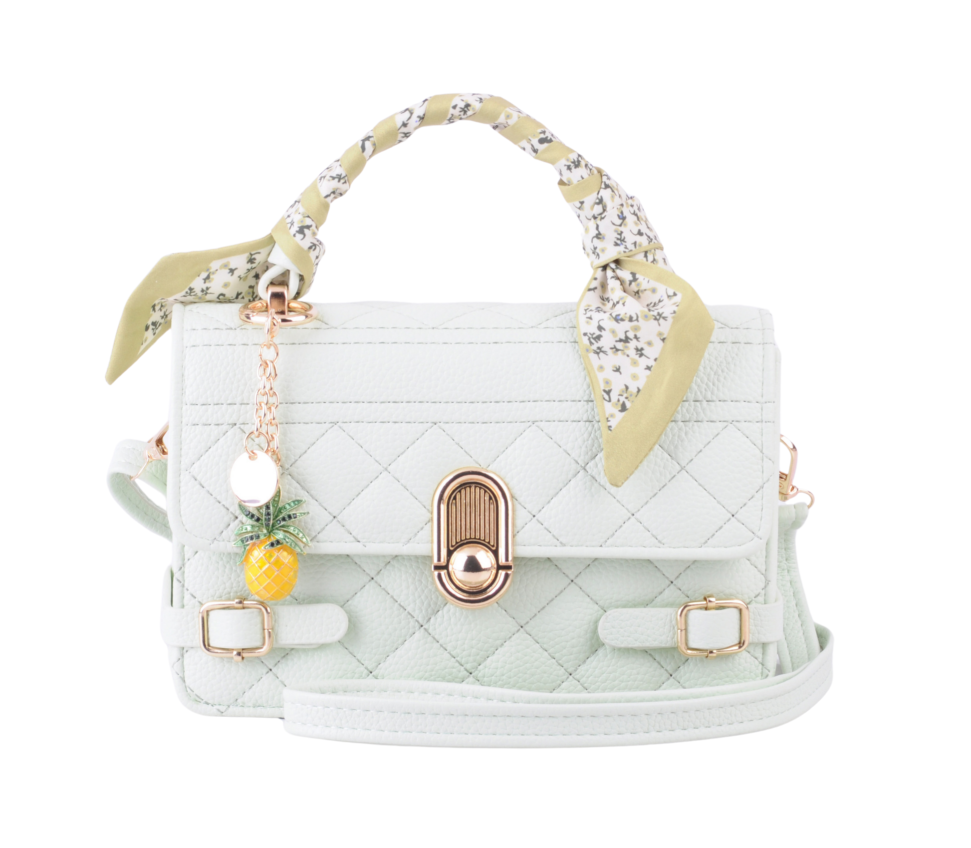 Freshen up your style with this mint-colored bag, featuring a playful pineapple charm and a chic scarf hang-off. The perfect combination of vibrant color and personality, this bag adds a fun, personalized touch to any outfit while keeping your look effortlessly stylish.
