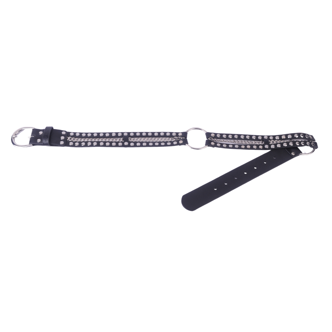 Crafted for the urban fashionista, this belt channels street style with its rocker-chic vibe. The crinkled patent leather adds texture, while the silver chains and studs give it a raw, rebellious energy. Perfect for pairing with low-waisted jeans, this belt is a must-have for anyone who loves street style, offering a standout accessory that brings an effortless cool factor to any outfit.