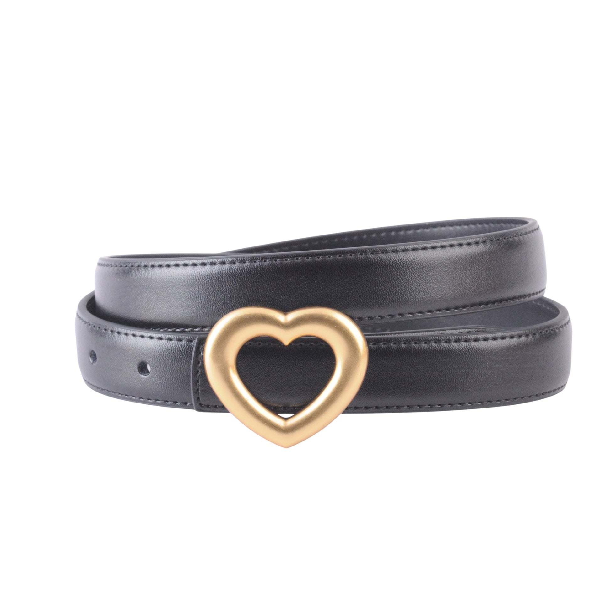 Made from soft, premium napa leather, this stitched clean belt pairs timeless craftsmanship with playful charm. The sleek silhouette is accented by contrast stitching and a romantic heart-shaped buckle for a bold yet feminine finish. A perfect accessory for adding personality to everyday looks — from high-waisted denim to flowy dresses. A standout piece for boutiques seeking cute basic pieces.
