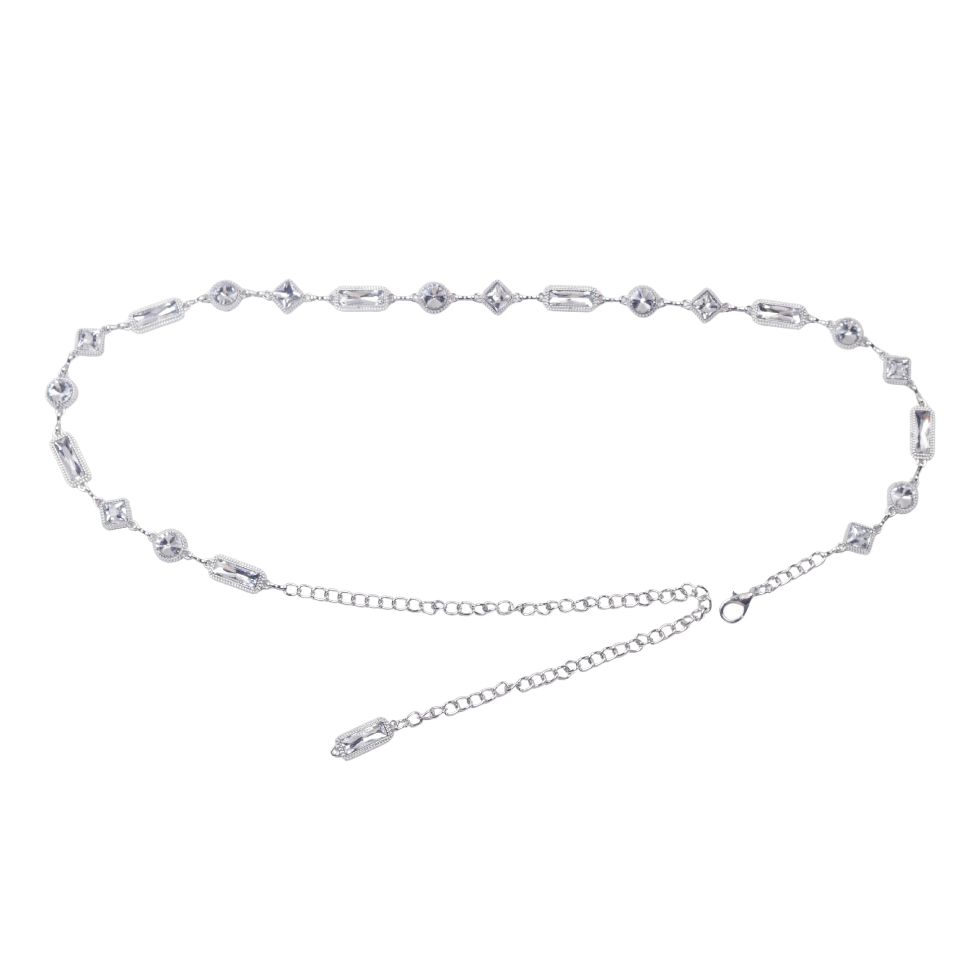 Keywords: gemstone chain belt, geometric waist chain, statement belt with gems, modern chain belt, boho gemstone belt, fashion belt for women, adjustable gem belt, angular link belt