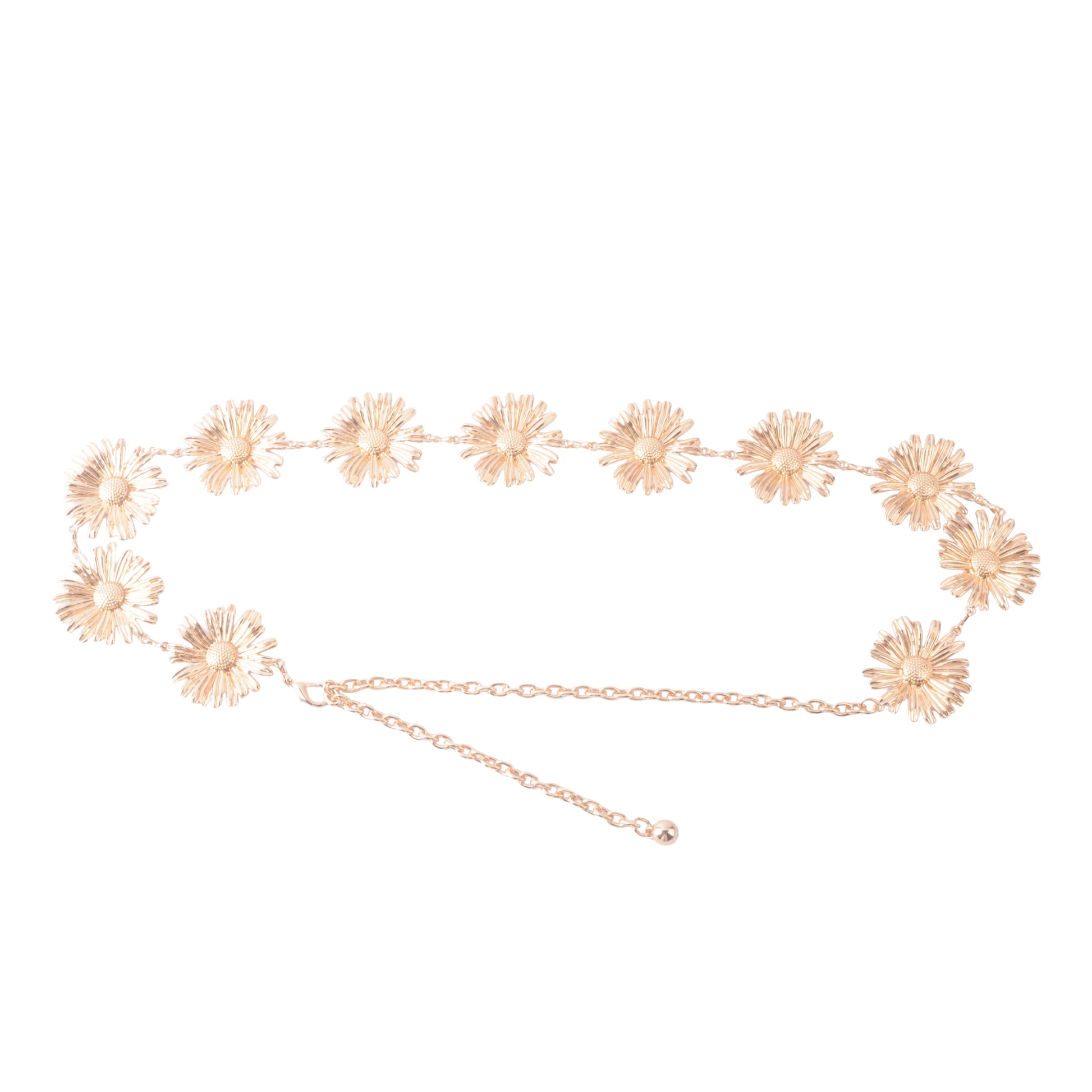 Add shine and sophistication with the Gold Daisy Chain Belt, a feminine and fun accessory that blends elegance with modern glam. Featuring glossy gold daisy links, this eye-catching belt instantly elevates any outfit—from casual denim to chic evening looks.