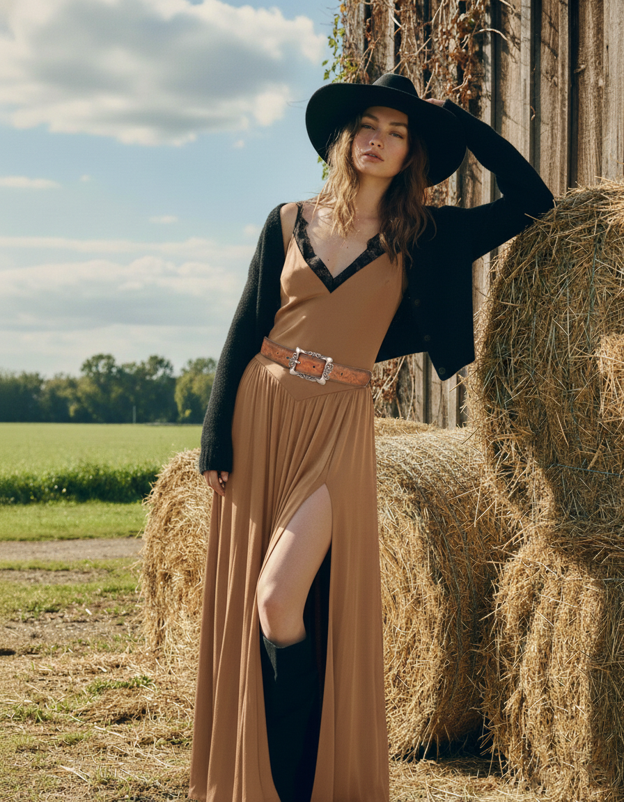 This belt is giving southwest charm with its ornate detailing on the buckle and patterning on the leather. This is a great staple choice for a jeans and boots combo.