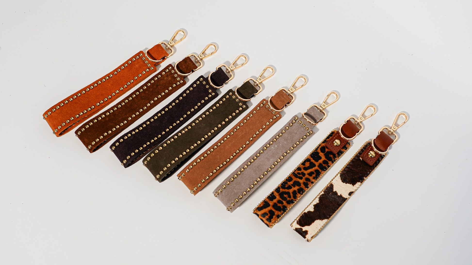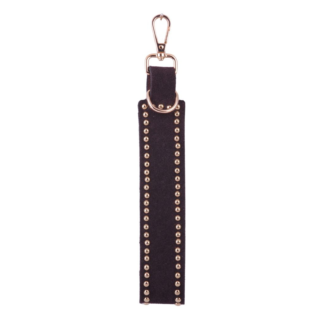 Your simple, clean and studded key chain will be the perfect way to add a touch of detail and character to your bag! The contrast between the shiny brass studs and the luxurious soft suede creates a cohesive balance of textures, keeping your look classy and chic.