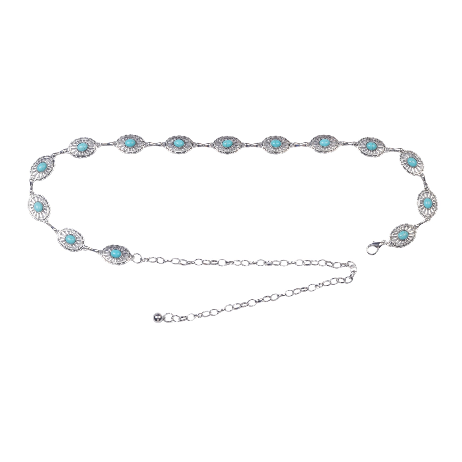Keywords: turquoise concho belt, small concho chain belt, Southwestern belt, boho turquoise waist chain, silver and turquoise belt, festival belt, women’s Western belt, adjustable concho belt