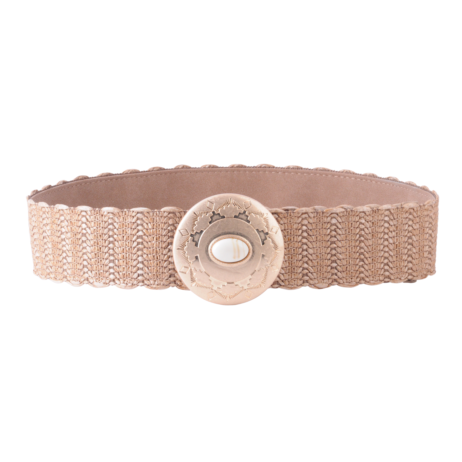 Elevate your look with this textured raffia belt, designed to bring natural dimension and refined contrast to any outfit. Featuring a sleek engraved pearl buckle, this belt balances organic texture with bold, modern detail. The woven raffia adds lightweight structure, while the pearl centerpiece creates a striking focal point. Perfect for cinching dresses, defining relaxed silhouettes, or styling with elevated everyday looks, this versatile belt transitions seamlessly from day to night.
