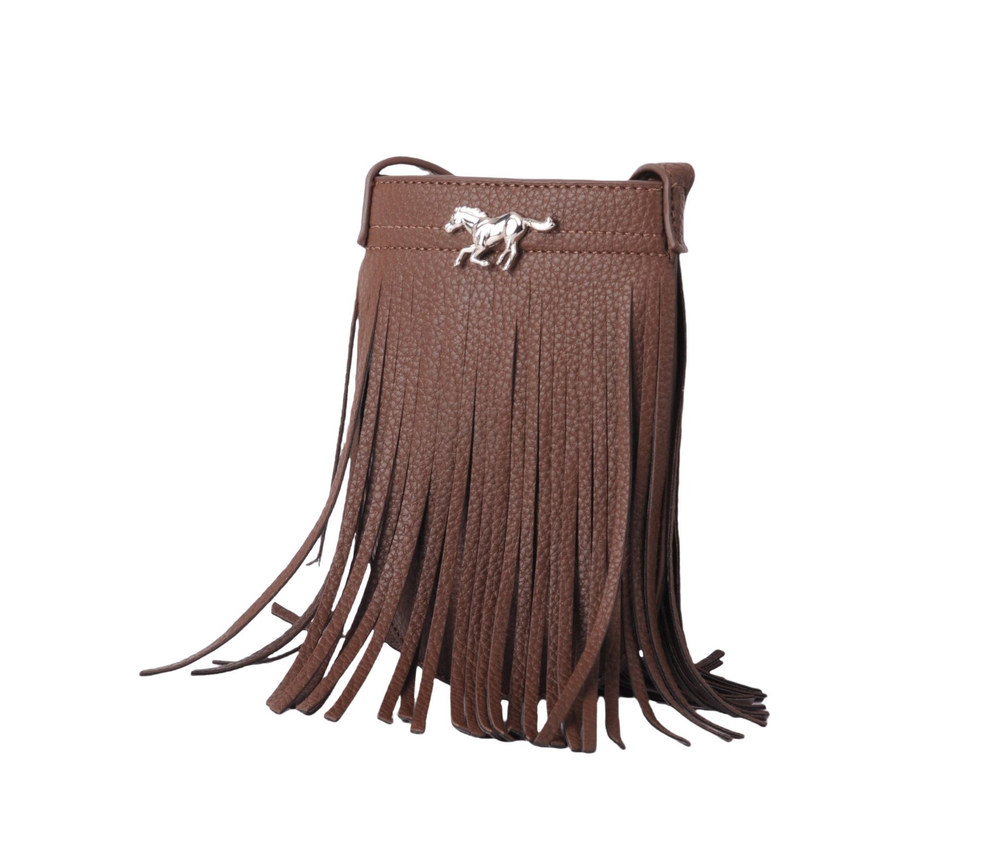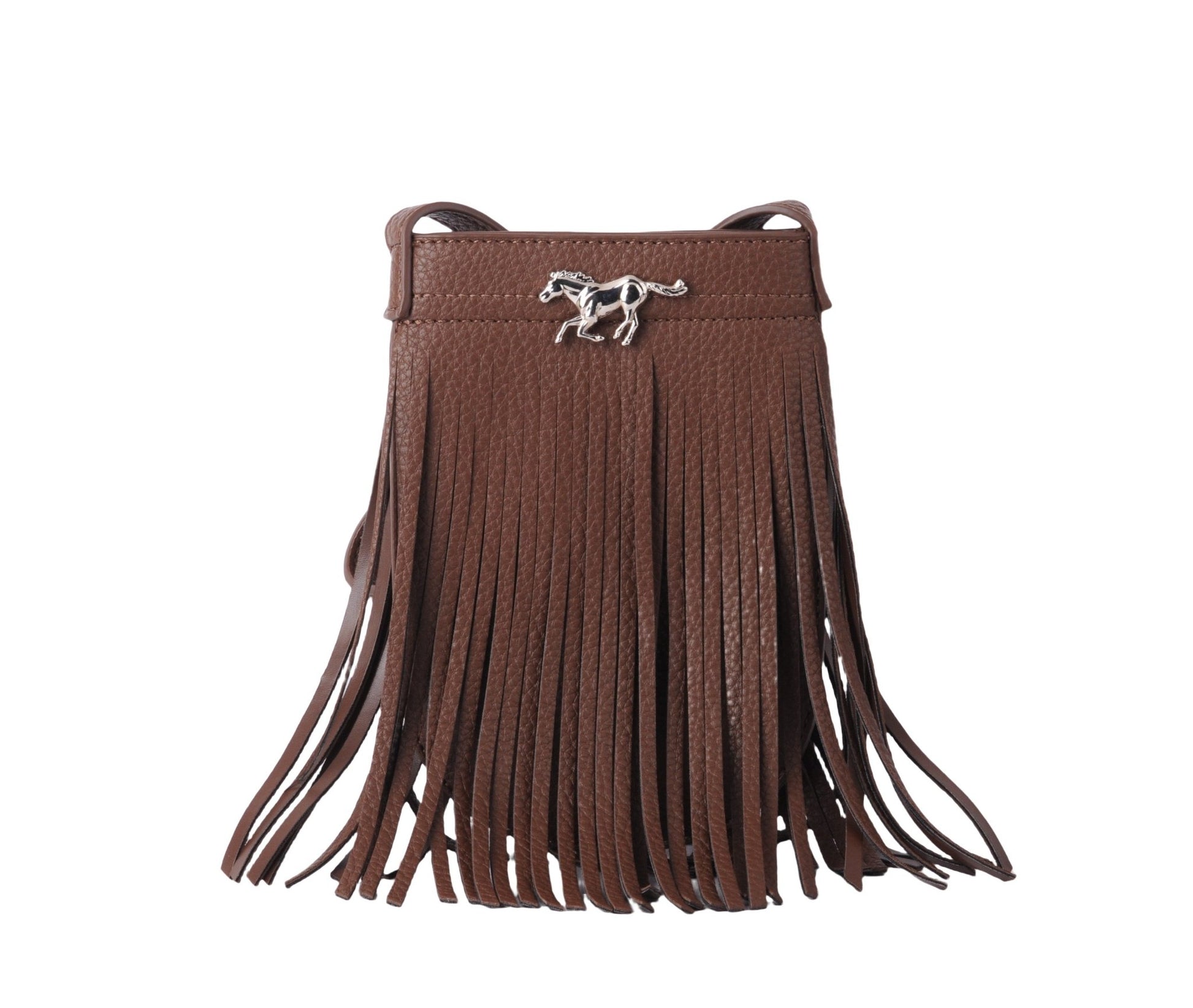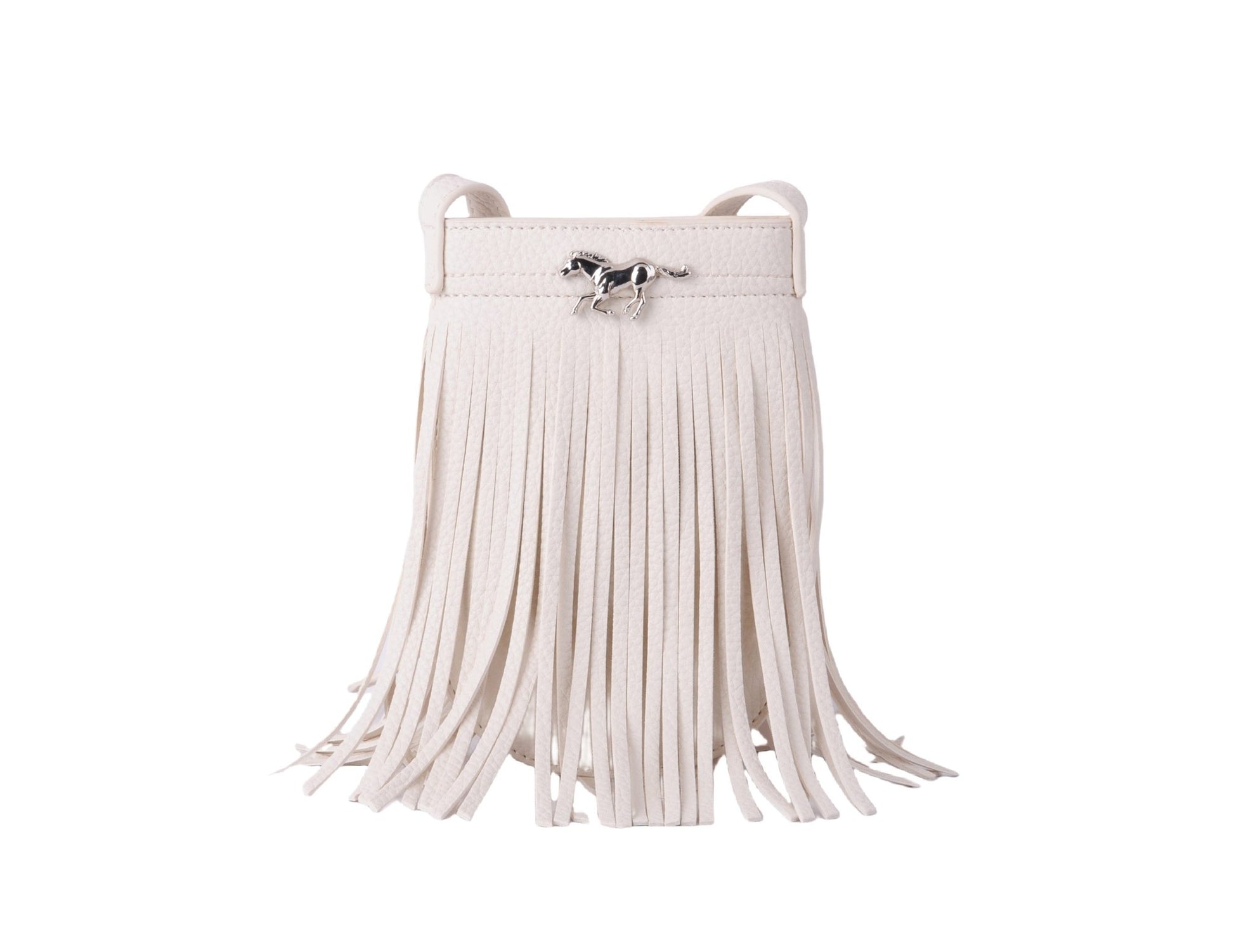 Vegan Leather Fringe North-South Bag with Horse Hardware