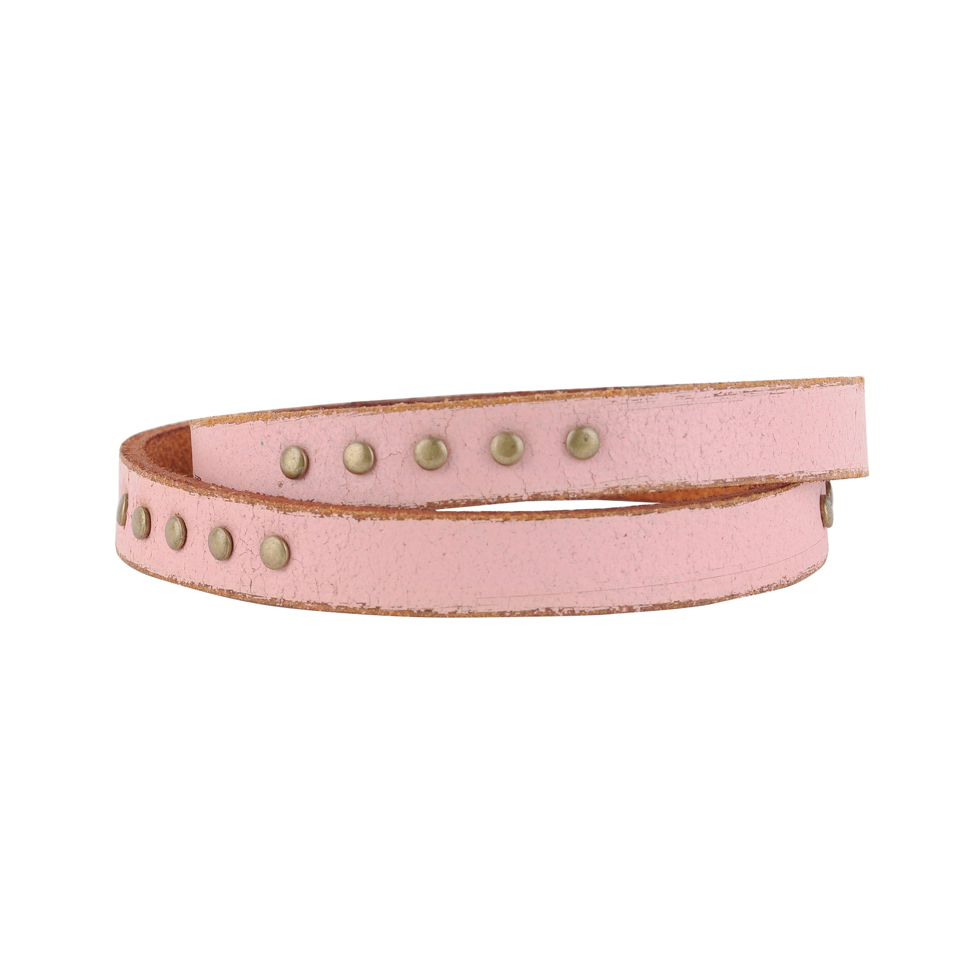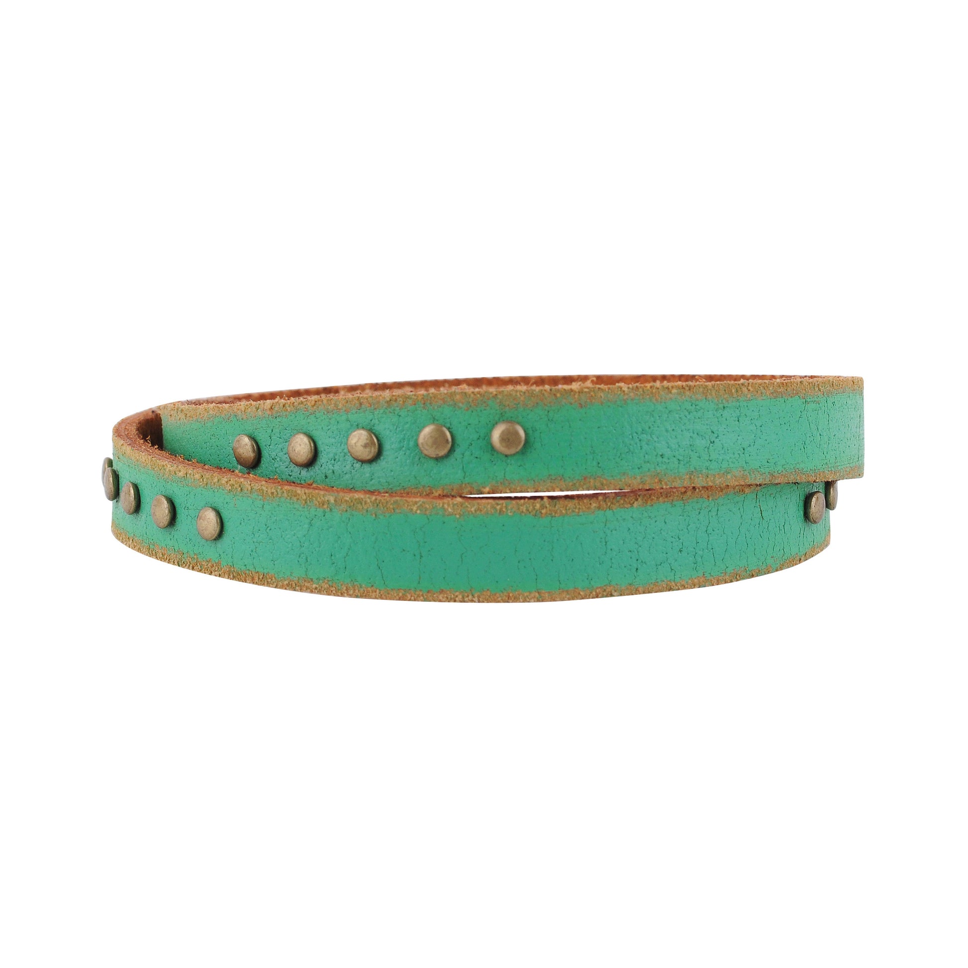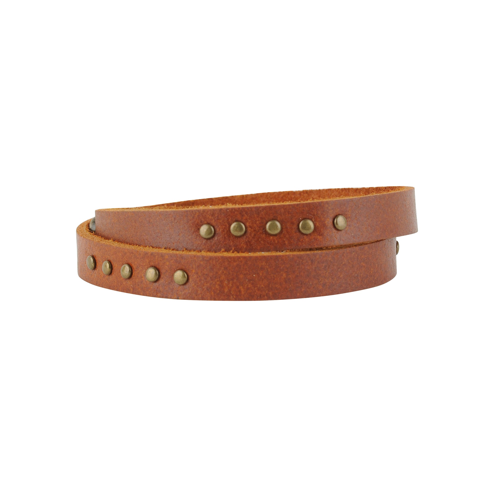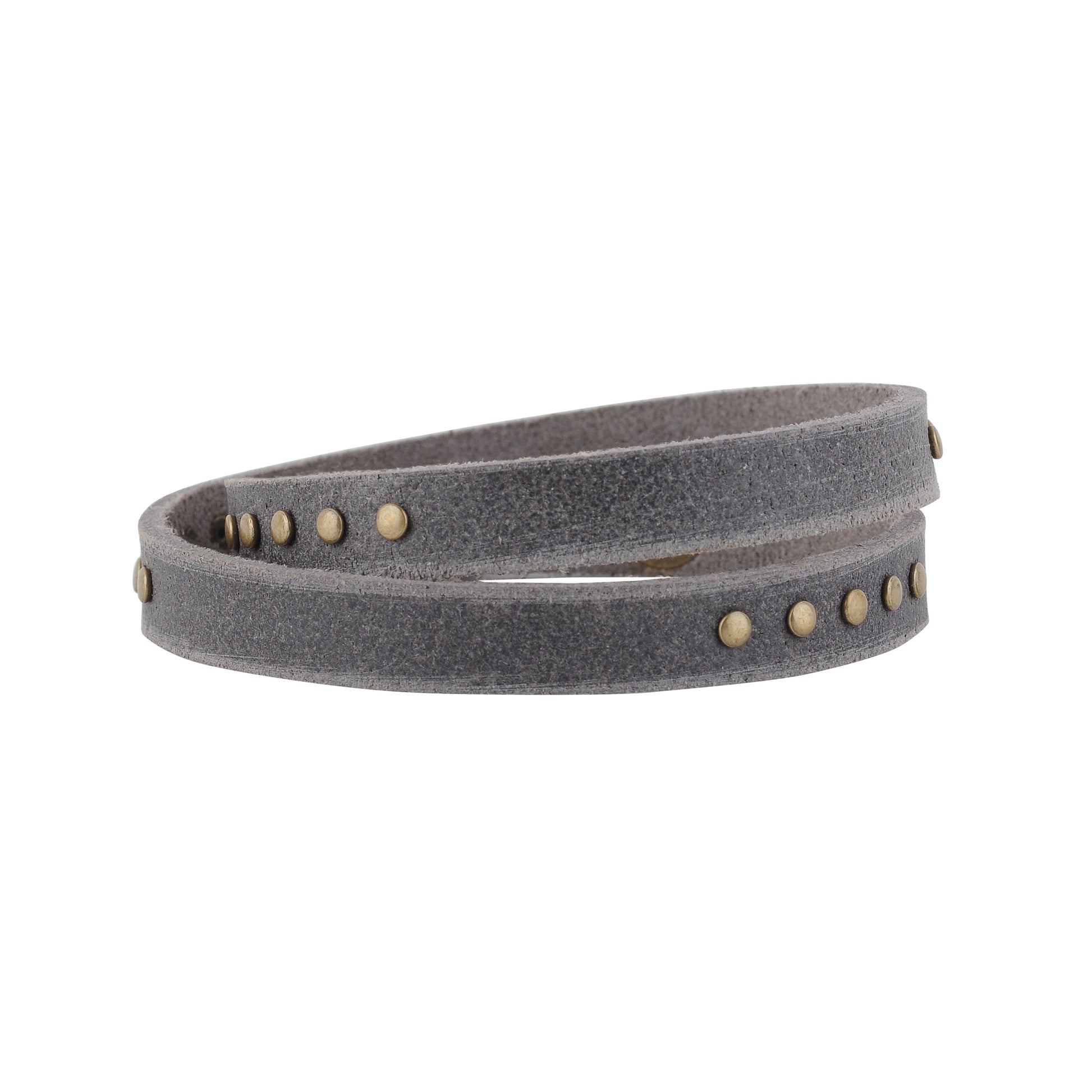 A minimal double wrapped leather bracelet stylized with small copper studs is our ultimate bracelet stackable. The bracelet can also be worn as a choker as well! One of our all time favorite pieces- the perfect stackable for every day!